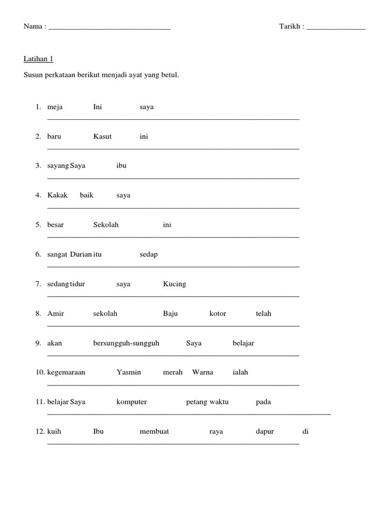 Latihan menyusun perkataan menjadi ayat tahun 1. Azrul nizam 3 weeks ago. Jika panggilan itu disambut, ilmu akan tetap. Membaca dan memahami ayat majmuk dengan sebutan yang betul. Menyusun perkataan menjadi 3 daripada 4 ayat berdasarkan gambar dengan betul.