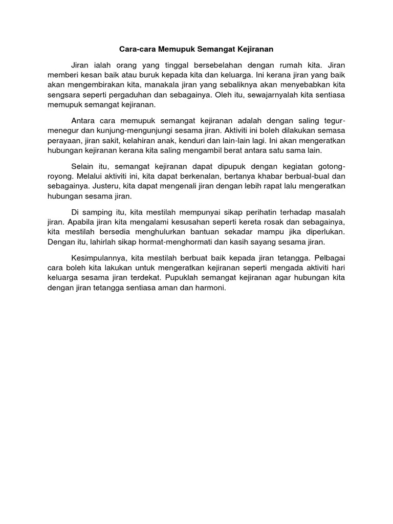 Karangan Fakta Pt3 Semangat Kejiranan from imgv2-1-f.scribdassets.com Semangat cinta akan negara merupakan antara tajuk soalan yang popular untuk digunakan dalam soalan karangan bahasa melayu pelbagai isi dan. 📄 dapatkan ganjaran dengan menjawab soalan melalui soal selidik dalam talian. Justeru aktiviti sukan di sekolah dapat memupuk semangat perpaduan antara murid berbilang kaum. Cara memupuk perpaduan dalam kalangan pelajar. Cara ini dapat memupuk semangat kerjasama dan saling bantu membantu di antara satu sama lain di dalam masyarakat malaysia. Cara memupuk perpaduan kaum di sekolah. Keharmonian seperti ini senang terhapus melalui sikap mementingkan diri sendiri yang dilihat kian tertanam di dalam jiwa masyarakat kini. Ini jawapan saya (yang telah diubah usai untuk dimuatkan dalam blog ini) untuk kertas 1 bahasa melayu bahagian b bagi peperiksaan akhir tahun 2014 dan markahnya ialah 95/100.