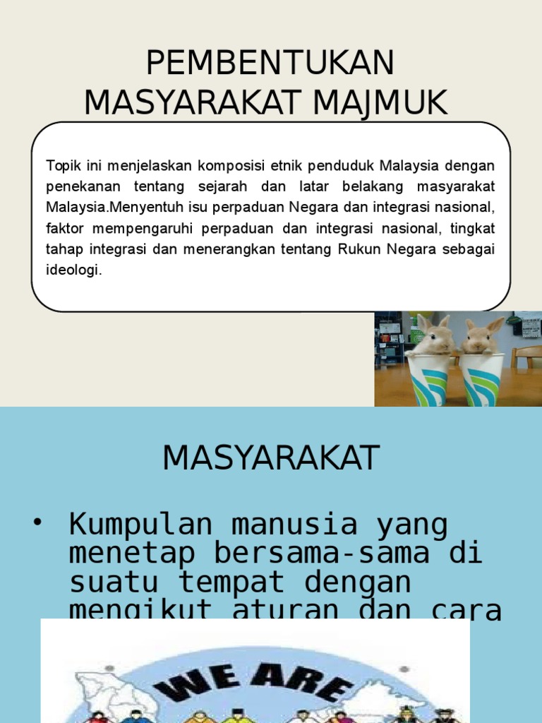 Sebagai ulasannya, pembentukan masyarakat majmuk di malaysia bermula apabila kemasukan migran daripada luar. Penubuhan malaysia satukan penduduk pelbagai kaum. Masyarakat majmuk di malaysia terjadi secara tidak sengaja. Bermulanya dengan pembentukan kerajaan kesultanan melayu melaka oleh parameswara di tempat anjing perburuannya ditendang seekor pelanduk. Walaupun terdapat perbezaan di antara setiap kaum seperti budaya hidup. Proses ini berterusan sehingga penjajahan british di tanah melayu. Pembentukan masyarakat malaysia ke arah perpaduan negara malaysia sebuah negara yang aman damai disamping penduduknya yang berbilang kaum. Persoalan besar yang dihadapi para pemimpin dan pendidik selepas perang dunia kedua ialah untuk mencari formula bagi melahirkan masyarakat malaysia yang bersatupadu, yakni masyarakat majmuk yang mempunyai keazaman, kesanggupan dan kesediaan untuk hidup bersama dalam keadaan. Oleh itu wujud masyarakat berbilang kaum ras etnik dan bangsa di malaysia. Kedatangan agama islam ke melaka dibawa melalui jalan laut oleh pedagang. Perbezaan antara agama dan penganutnya upkk tahun 5 2017 peristiwa penting novel leftenan adnan wira bangsa tangga gaji dg42 2018 ucapan takziah untuk orang meninggal semakan pertukaran jururawat u29 2017 upah di malaysia 2011 hingga 2015 selamat menyambut hari kemerdekaan. Banyak konflik yang berlaku dalam proses pembentukan ini seperti peristiwa 13 mei 1969. Harmonikan hubungan masyarakat pelbagai kaum.